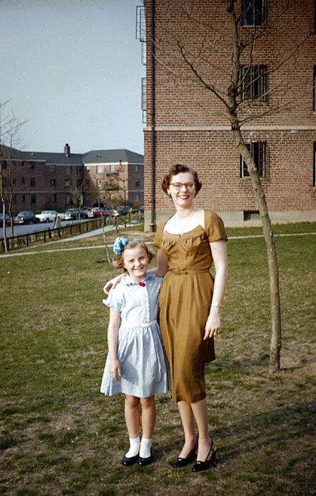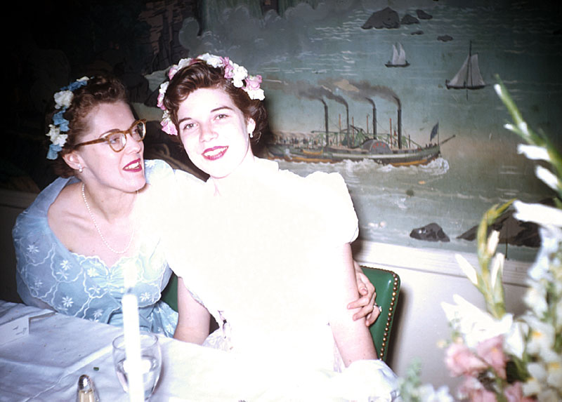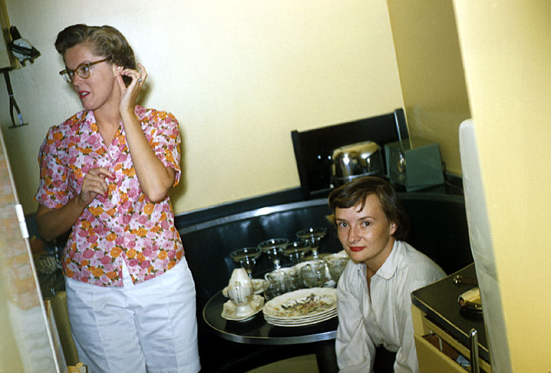 My mom in the kitchen. That's her friend and my godmother Joan with her. |