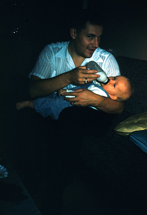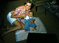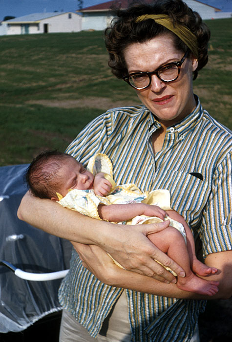 My mom holding a baby, might be me...